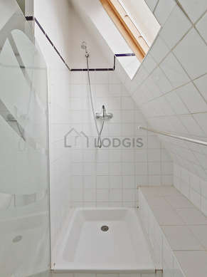 Este apartamento é equipado de uma casa de banho agradável é muito clara with janelas. Esta sala de água dispõe do necessário pelo seu bem estar na sua vida quotidiana : toalhas de banho, prateleira, armário, ducheiro separado. Os WC são separados da casa de banho e situados em uma peça independente.
