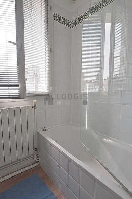 Este apartamento é equipado de uma casa de banho magnífico é muito clara with janelas. Esta sala de água dispõe do necessário pelo seu bem estar na sua vida quotidiana : toalhas de banho, armário, banheira, secador, radiator secador de toalhas. Os WC são separados da casa de banho e situados em uma peça independente.