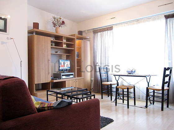 Este apartamento é composto de um agradável salão com parqué no piso é janelas vitros duplos é vista sobre jardim. Este salão very quiet mobiliado et equipado para uma agradável estância : televisaõ, lençois, colchas, mesa de jantar, mesinha, roupeiro, prateleira, armário, 2 cadeira(s), banco2 sofá-cama.