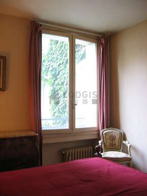 Com parqué no piso é janelas vitros duplos é vista sobre pátio, este quarto atraente é espaçoso oferece o equipamento necessário para descansar durante sua estância : lençois, 1 poltrona(s), guarda-roupa, comoda, 1 cadeira(s), mesinha de cabeceira1 cama.