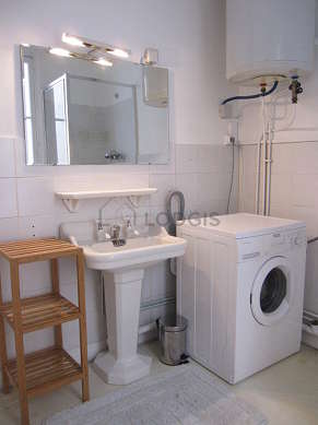 Este apartamento é equipado de uma casa de banho agradável é clara with janelas. Esta sala de água dispõe do necessário pelo seu bem estar na sua vida quotidiana : toalhas de banho, roupeiro, prateleira, armário, ducheiro separado, secador. Os WC são separados da casa de banho e situados em uma peça independente.
