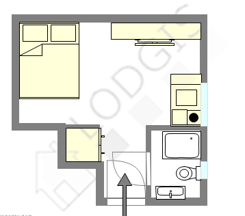 Este apartamento é composto de um atraente salão com linoleo no piso é janelas é vista sobre pátio. Este salão calmo mobiliado et equipado para uma agradável estância : televisaõ, lençois, mesa de jantar, roupeiro, prateleira, pedras aparentes, 4 cadeira(s)1 cama.