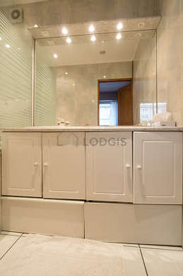 Este apartamento é equipado de uma casa de banho agradável é clara. Esta sala de água dispõe do necessário pelo seu bem estar na sua vida quotidiana : toalhas de banho, armário, banheira. Os WC são separados da casa de banho e situados em uma peça independente.