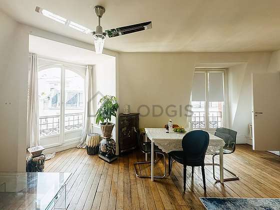 SalaõEste apartamento é composto de um atraente salão com parqué no piso é janelas vitros duplos é vista sobre rua. Este salão very quiet mobiliado et equipado para uma agradável estância : televisaõ, lençois, sofá, mesa de jantar, mesinha, prateleira, floor lamp, tv stand, mirror, painting, carpet1 sofá-cama.