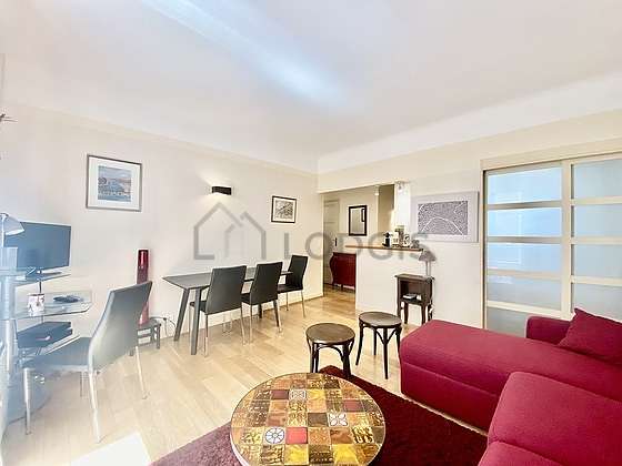 Este apartamento é composto de um agradável salão com parqué no piso é janelas é vista sobre rua. Este salão very quiet mobiliado et equipado para uma agradável estância : televisaõ, sofá, mesa de jantar, mesinha, secretária, bufet, 4 cadeira(s), bar.