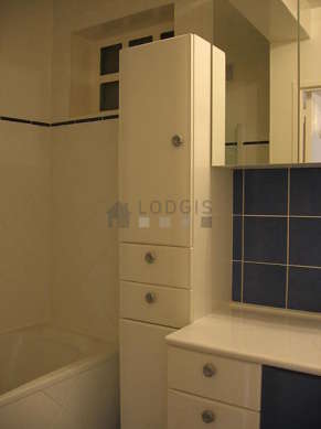 Este apartamento é equipado de uma casa de banho agradável. Esta sala de água dispõe do necessário pelo seu bem estar na sua vida quotidiana : toalhas de banho, prateleira, armário, banheira, secador. Os WC são separados da casa de banho e situados em uma peça independente.