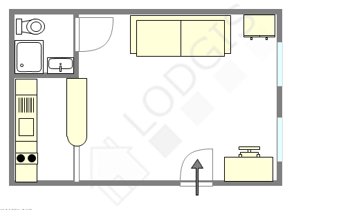 Este apartamento é composto de um charmoso salão com parqué no piso é janelas é vista sobre pátio. Este salão calmo mobiliado et equipado para uma agradável estância : televisaõ, lençois, colchas, 1 poltrona(s), mesinha, secretária, prateleira, comoda, armário, 1 cadeira(s)1 sofá-cama.