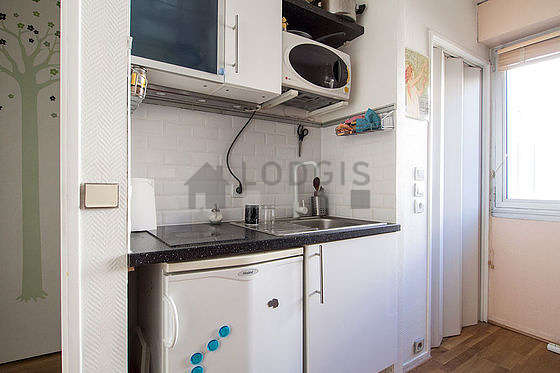 Este apartamento tem uma bonita cozinha com azuleijo no piso e todo o equipamento pela sua vida quotidiana : fogaõ, frigorífico, micro-ondas combinado, freezer, torradeira, chaleira, máquina de café, armário, loiça.