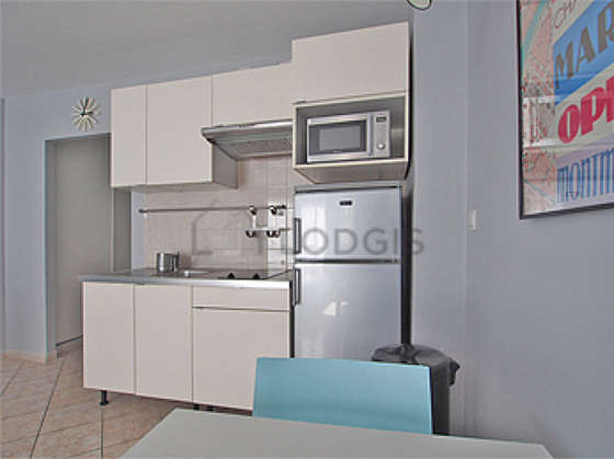 Este apartamento tem uma magnífico cozinha com azuleijo no piso e todo o equipamento pela sua vida quotidiana : fogaõ, frigorífico, congelador, microondas, exaustur, chaleira, mesa de jantar, armário, loiça, 2 cadeira(s).