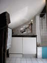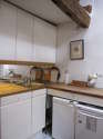 Este apartamento tem uma cozinha com azuleijo no piso e todo o equipamento pela sua vida quotidiana : fogaõ, frigorífico, congelador, forno, micro-ondas combinado, exaustur, torradeira, máquina de café, armário, loiça, electrodomésticos.