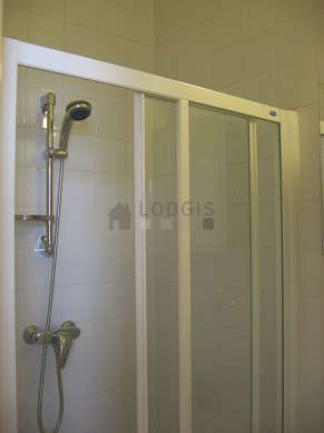 Este apartamento é equipado de uma casa de banho agradável é clara. Esta sala de água dispõe do necessário pelo seu bem estar na sua vida quotidiana : toalhas de banho, armário, ducheiro separado. Os WC são separados da casa de banho e situados em uma peça independente.