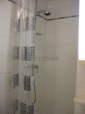 Este apartamento é equipado de uma casa de banho agradável. Esta sala de água dispõe do necessário pelo seu bem estar na sua vida quotidiana : toalhas de banho, prateleira, armário, ducheiro separado, secador, sanibroyer, radiator secador de toalhas. Os WC são integrados na casa de banho.