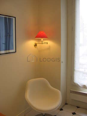 SalaõEste apartamento é composto de um bonito salão com azuleijo no piso é janelas vitros duplos é vista sobre pátio. Este salão very quiet mobiliado et equipado para uma agradável estância : televisaõ, 1 poltrona(s), secretária, biblioteca, prateleira, armário, 1 cadeira(s)1 sofá-cama.
