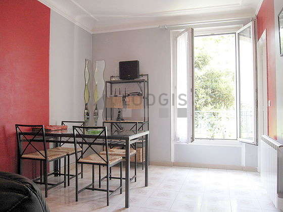 Este apartamento é composto de um charmoso salão com azuleijo no piso é janelas vitros duplos é vista sobre jardim. Este salão very quiet mobiliado et equipado para uma agradável estância : televisaõ, mesa de jantar, prateleira, 4 cadeira(s)1 sofá-cama.