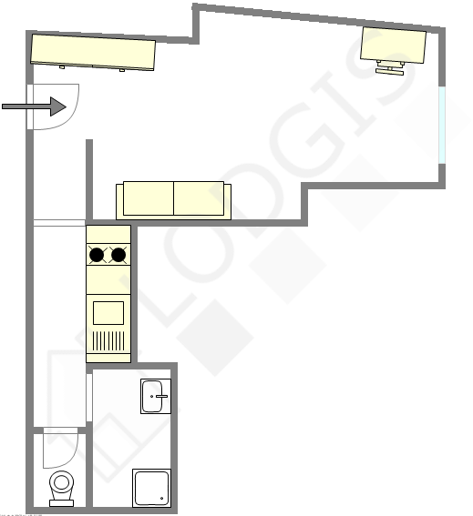 Este apartamento é equipado de uma casa de banho. Esta sala de água dispõe do necessário pelo seu bem estar na sua vida quotidiana : toalhas de banho, prateleira, armário, ducheiro separado, secador. Os WC são separados da casa de banho e situados em uma peça independente.