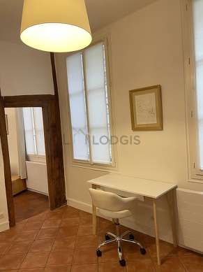 Este apartamento é composto de um magnífico salão com azuleijo no piso é janelas é vista sobre pátio. Este salão calmo mobiliado et equipado para uma agradável estância : televisaõ, 1 poltrona(s), mesinha, secretária, prateleira, loiça, 1 cadeira(s), tv stand1 cama em mezanino.