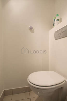 Este apartamento é equipado de uma casa de banho agradável é clara with janelas vitros duplos. Esta sala de água dispõe do necessário pelo seu bem estar na sua vida quotidiana : toalhas de banho, armário, ducheiro separado, secador. Os WC são separados da casa de banho e situados em uma peça independente.