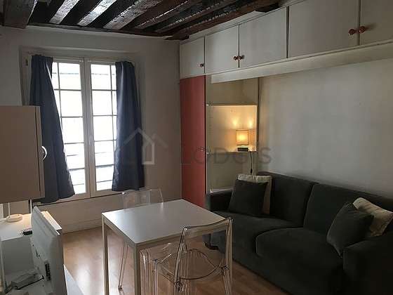 Este apartamento é composto de um charmoso salão com parqué no piso é janelas vitros duplos é vista sobre rua. Este salão calmo mobiliado et equipado para uma agradável estância : televisaõ, lençois, colchas, mesa de jantar, mesinha, roupeiro, bufet, armário, 2 cadeira(s)1 sofá-cama.
