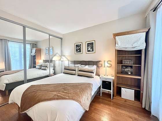 Com parqué no piso é janelas vitros duplos é vista sobre pátio, este quarto atraente oferece o equipamento necessário para descansar durante sua estância : lençois, colchas, secretária, roupeiro, biblioteca, guarda-roupa, armário, mesinha de cabeceira, mirror1 cama.