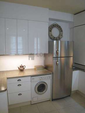 Este dúplex tem uma magnífico cozinha perto do salaõ com azuleijo no piso e todo o equipamento pela sua vida quotidiana : fogaõ, frigorífico, congelador, forno, exaustur, torradeira, chaleira, máquina de café, armário, loiça, electrodomésticos.