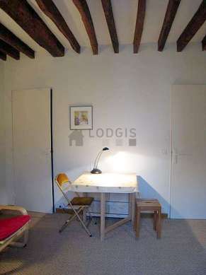 SalaõEste apartamento é composto de um atraente salão com estilo coco no piso é janelas é vista sobre rua. Este salão calmo mobiliado et equipado para uma agradável estância : televisaõ, 2 poltrona(s), mesa de jantar, mesinha, roupeiro, biblioteca, 4 cadeira(s).