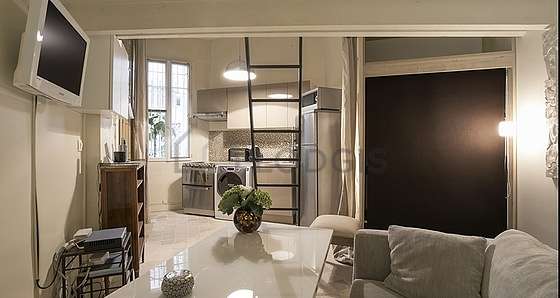 SalaõEste apartamento é composto de um agradável salão com mármore no piso. Este salão very quiet mobiliado et equipado para uma agradável estância : televisaõ, lençois, colchas, sofá, 1 poltrona(s), mesa de jantar, secretária, roupeiro, prateleira, guarda-roupa, armário, loiça, 1 cadeira(s)1 colchaõ.