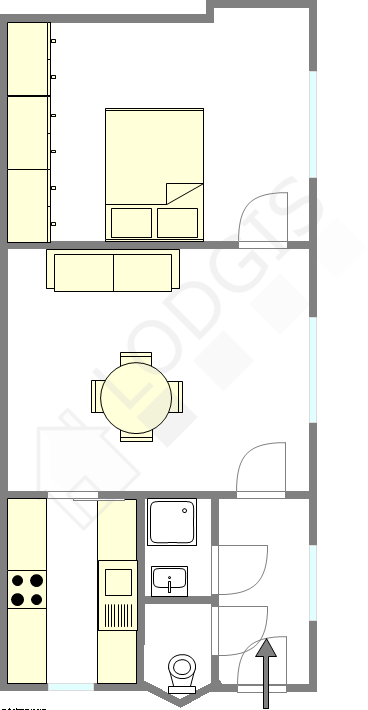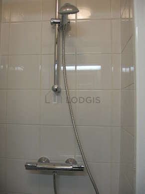 Este apartamento é equipado de uma casa de banho. Esta sala de água dispõe do necessário pelo seu bem estar na sua vida quotidiana : toalhas de banho, prateleira, ducheiro separado, secador. Os WC são separados da casa de banho e situados em uma peça independente.