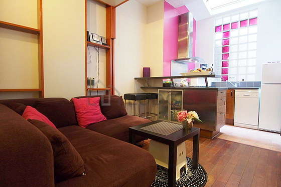 Este apartamento é composto de um atraente salão com parqué no piso. Este salão calmo mobiliado et equipado para uma agradável estância : televisaõ, lençois, colchas, sofá, mesinha, roupeiro, prateleira, armário1 cama embutida no muro.