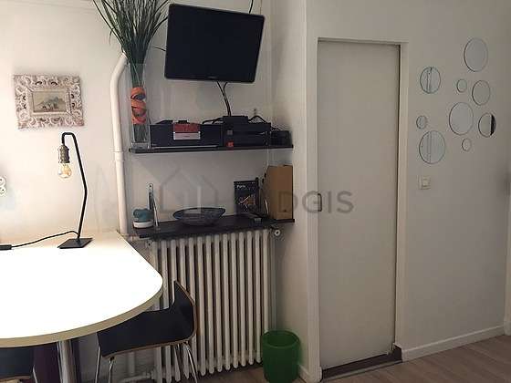 Este apartamento é composto de um charmoso salão com parqué no piso. Este salão calmo mobiliado et equipado para uma agradável estância : televisaõ, lençois, colchas, mesinha, prateleira, comoda, armário, banco1 sofá-cama.