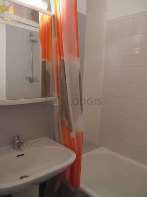 Este apartamento é equipado de uma casa de banho. Esta sala de água dispõe do necessário pelo seu bem estar na sua vida quotidiana : toalhas de banho, armário, banheira, secador, radiator secador de toalhas. Os WC são separados da casa de banho e situados em uma peça independente.
