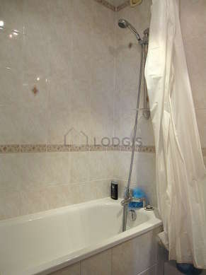 Este apartamento é equipado de uma casa de banho. Esta sala de água dispõe do necessário pelo seu bem estar na sua vida quotidiana : toalhas de banho, armário, banheira, secador. Os WC são separados da casa de banho e situados em uma peça independente.