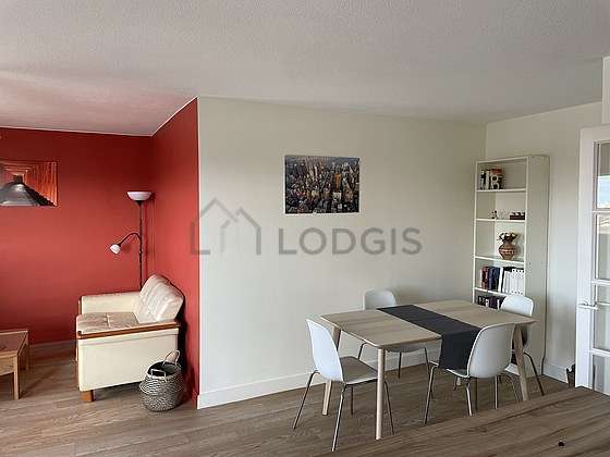 Este apartamento é composto de um soberbo salão com parqué no piso é janelas vitros duplos. Este salão very quiet mobiliado et equipado para uma agradável estância : home cinema, televisaõ, sofá, mesinha, prateleira, 1 cadeira(s), floor lamp, tv stand, painting.