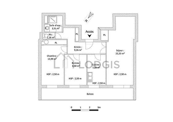 Este apartamento é equipado de uma casa de banho. Esta sala de água dispõe do necessário pelo seu bem estar na sua vida quotidiana : comoda, sink, radiator secador de toalhas. Os WC são separados da casa de banho e situados em uma peça independente.