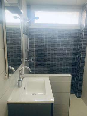 Este apartamento é equipado de uma casa de banho. Esta sala de água dispõe do necessário pelo seu bem estar na sua vida quotidiana. Os WC são separados da casa de banho e situados em uma peça independente.