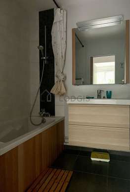 Este apartamento é equipado de uma casa de banho. Esta sala de água dispõe do necessário pelo seu bem estar na sua vida quotidiana. Os WC são separados da casa de banho e situados em uma peça independente.