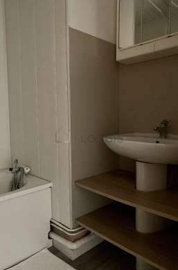 Este apartamento é equipado de uma casa de banho. Esta sala de água dispõe do necessário pelo seu bem estar na sua vida quotidiana : prateleira, guarda-roupa, banheira, sink. Os WC são integrados na casa de banho.
