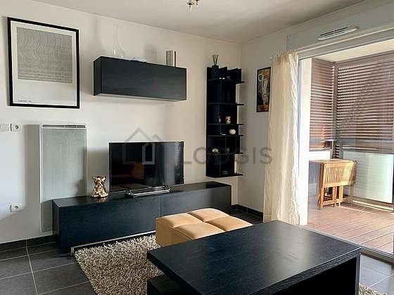 Este apartamento é composto de um salão janelas vitros duplos. Este salão mobiliado et equipado para uma agradável estância : sofá, mesinha.