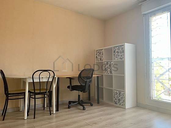 SalaõEste apartamento é composto de um salão janelas vitros duplos. Este salão mobiliado et equipado para uma agradável estância : colchas, sofá, mesa de jantar, secretária, biblioteca, prateleira, guarda-roupa, armário, 1 cadeira(s).