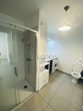 Este apartamento é equipado de uma casa de banho. Esta sala de água dispõe do necessário pelo seu bem estar na sua vida quotidiana : prateleira, ducheiro separado, sink. Os WC são integrados na casa de banho.