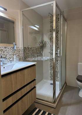 Este apartamento é equipado de uma casa de banho. Esta sala de água dispõe do necessário pelo seu bem estar na sua vida quotidiana : banheira, sink. Os WC são separados da casa de banho e situados em uma peça independente.