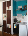 Плитка - Холодильник - Микроволноя духовка - Тостер - Стол - Полка - Шкаф - Стенной шкаф - Посуда - 1 Стульев