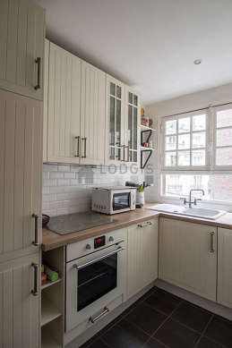 Плитка - Холодильник - Морозилка - Духовка - Микроволноя духовка - hood - Тостер - Электрический чайник - Полка - Стенной шкаф - Посуда - Бытовая техника - 1 Стульев - Бар
