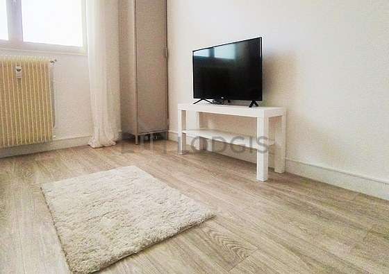 ГостинаяТелевизор - Простыни - Одеяло - Диван - 1 Кресел - Бюро - Шкаф - 1 Стульев - floor lamp - TV stand - Mirror - coat stand - bin - vase