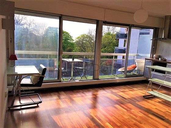 Гостиная (26 m²) : - Открытый вид - Вид на : Le parc des Buttes Chaumont