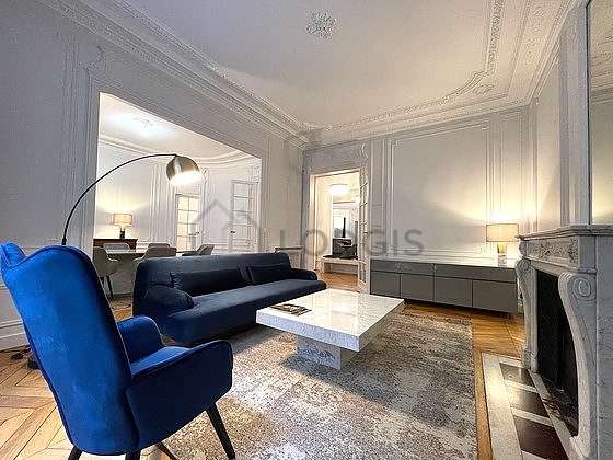 Coup de coeur, Paris 8ème, dans une rue calme à proximité du Parc Monceau, de la place des Ternes et de la rue du Faubourg Saint Honoré, au 1er étage avec ascenseur, sur cour , d'un très bel immeuble haussmannien avec gardien, un magnifique appartement meublé entièrement refait à neuf de 131m2 composé d'une belle entrée, un grand séjour et salle à manger en arrondi, deux grandes chambres dont une avec salle de douche une salle de douche séparée avec toilettes, un toilettes séparés, cuisine dinatoire de bonne taille. Grande cave. Local à vélo. Appartement avec beaucoup de rangements, de charme et cachet.