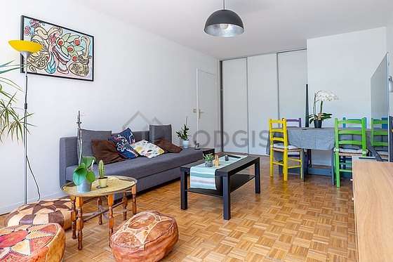 ГостинаяТелевизор - Простыни - Одеяло - Холодильник - Диван - 1 Кресел - Стол - Гардероб - Полка - Шкаф - Коммод - Стенной шкаф - Посуда - 1 Стульев - Табурет - Ночной столик - airer - floor lamp - TV stand - Mirror - bin - pouffe - painting