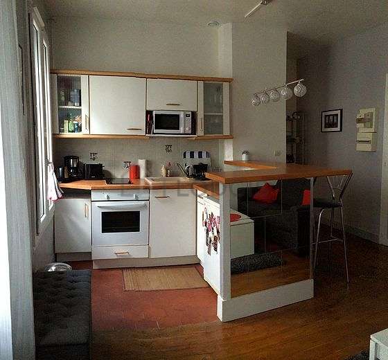 This apartment consists of great kitchen with wooden floor and all the necessary equipment for your daily life: hob, refrigerator, freezer, oven, microwave oven, toaster, coffee-maker, shelves, cupboard, crockery, 1 chair(s), bar, bin.