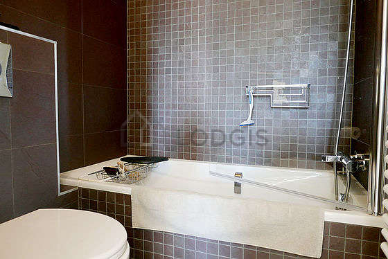 This apartment is equipped with a pleasant bathroom and bright. This bathroom is furnished with all the equipment you need for a comfortable stay: shelves, cupboard, bath tub, sink, towel drying radiator. The toilets are located in the bathroom.