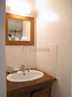 This apartment is equipped with a bathroom. This bathroom is furnished with all the equipment you need for a comfortable stay: bath towels, cupboard, separate shower, hair-dryer. The toilets are separated from the bathroom and located in an independant room.