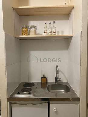 This apartment consists of beautiful kitchen with wooden floor and all the necessary equipment for your daily life: hob, refrigerator, microwave oven, shelves, crockery.